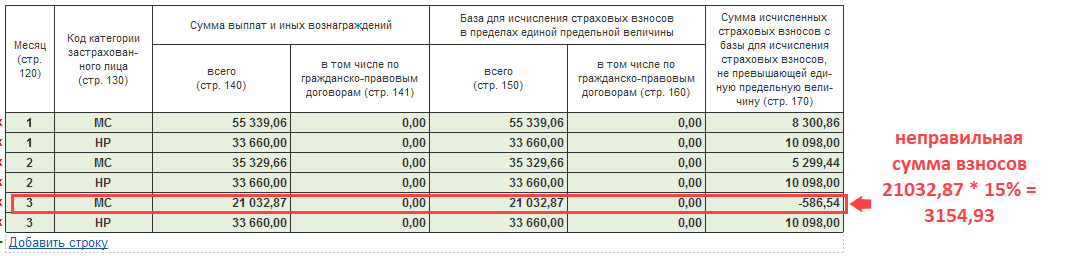 Анализ взносов в фонды совпадает с отчетом по страховым взносам, но не совпадает с данными из РСВ по одному сотруднику. В чем может быть ошибка?