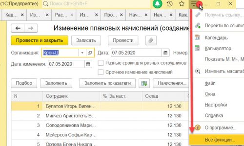 В карточке сотрудника недостаточно сведений, мне необходимо проанализировать дату получения дохода. Если меню Все функции не отображается, то его отображение можно включить через Настройки — Параметры. Сразу предупрежу, что доступно меню Все функции только пользователям с полными правами.