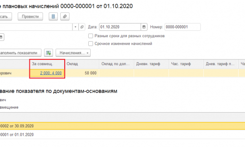Оказывается в Изменении плановых начислений «закрепился» именно этот документ Совмещения со старым окладом.