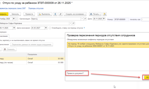 Здравствуйте! Подскажите сегодня у нашей сотрудницы закончился отпуск по уходу за ребенком до 1,5 лет. Он остается в отпуске по уходу до 3 лет. У нас в ЗУП отпуск был проведен только по сегодняшнюю дату. Сейчас мы создаем новый документ Отпуск по уходу?