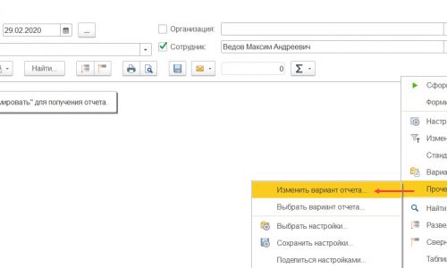 1. Откройте режим изменения варианта отчета и снимите скриншот открывшегося окна.