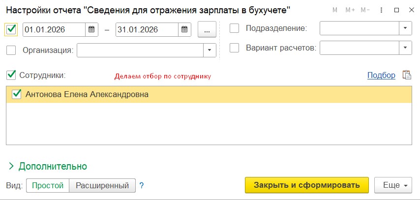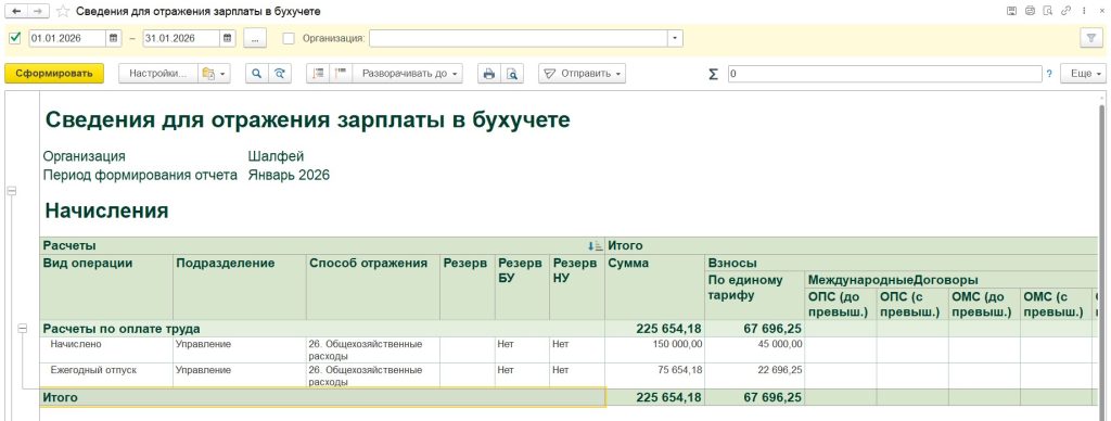 Добрый день!Ваш вопрос в работе,все хорошо🌷 Если я верно поняла, то проблема заключается в том,что не вся сумма взносов попадает в документ Отражение зарплаты в бухучете. Пожалуйста приложите скриншот отчета Сведения для отражения зп в бухучете, в отчете делаем отбор по сотруднику с проблемой, период -январь 2026. Также попрошу приложить скриншот нашего донастроенного отчета Анализ страховых взносов, скачать настройки можно в статье https://buhexpert8.ru/1s-zup/ndfl-i-strahovye-vznosy-1s-zup/otchetnost-po-strahovym-vznosam/nastrojki-otchetov-v-zup-3-1-dlya-analiza-vznosov.html, после загрузки настроек отчета формируем его с отбором по сотруднику, приложите пожалуйста скрин таблицы по тарифам, месяцам и начислениям, отчет формируем за январь. Примеры скриншотов прилагаю. Если что-то будет не понятно,обязательно напишите.