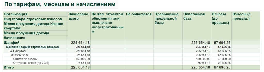 На примере отдно сотрудника, прикладываю скрины. Взносы считаются неверно имнно по отпуску.