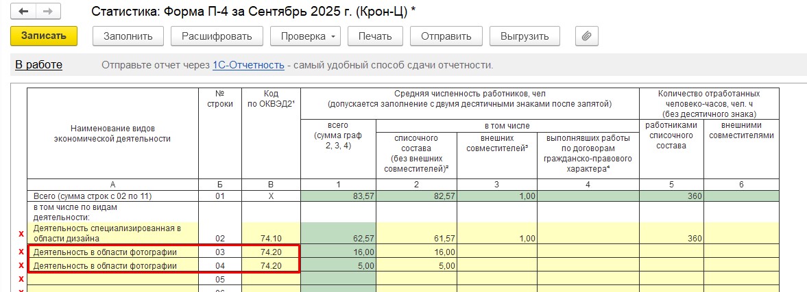 Добрый день! Почему в П-4 один ОКВЭД заполняется двумя строками?