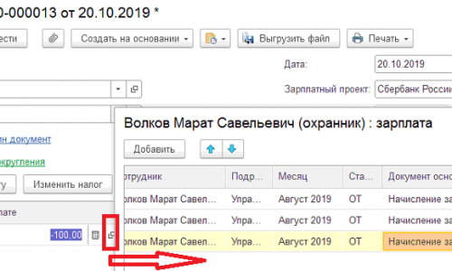 «Минусовые» записи можно подредактировать на сумму взаимозачета. В моём примере нужно удалить последнюю строчку -100. Дополнительно про корректировку можно посмотреть статью — Как правильно корректировать сумму к выплате в ведомости при частичной выплате дохода? .