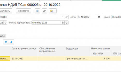 Затем создать Перерасчет НДФЛ- где программа досчитает разницу НДФЛ