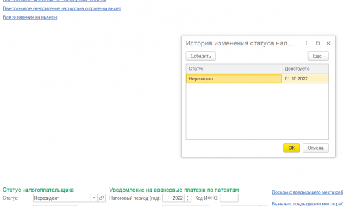 Необходимо зайти в Сотрудника на закладку «Налог на доходы»- зайти в историю изменения статуса налогоплательщика- и перевыбрать Нерезидент