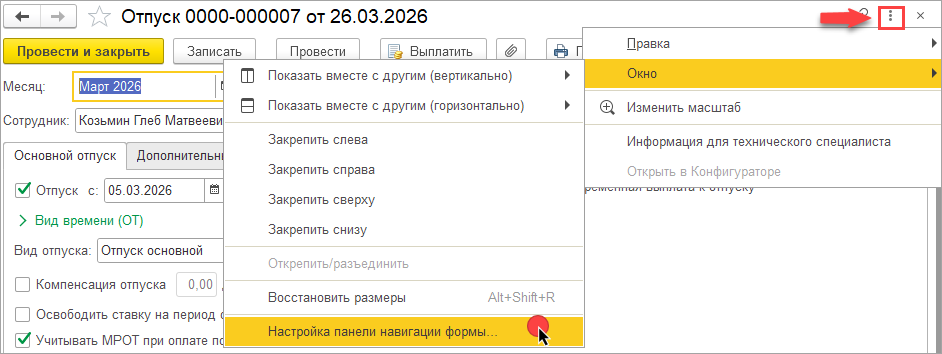 — По кнопке «три точки» и выберем пункт Окно – Настройка панели навигации формы.