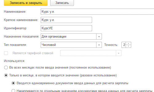 1. Здравствуйте! Такое пожелание записано разработчиками в 2014 для версии ЗУП КОРП, но до сих пор не реализовано. Сейчас они рекомендуют добавить разовый показатель «Курс у.е.» и вводить его ежемесячно документом «Данные для расчета зарплаты». Формула для начисления оклада будет иметь вид «КурсУЕ * Оклад * ДоляНеполногоРабочегоВремени * ВремяВДнях / НормаДней». Настройки подробно рассмотрены в кейсе — Расчет оклада в валюте .