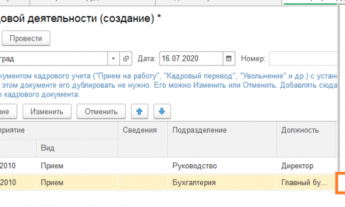 При создании документа «Регистрация трудовой деятельности» в поле «Разряд категория» до обновления программы на последнюю версию была возможность выбора разряда для сотрудника в табличной части документа.