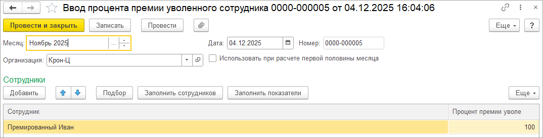 И за месяц премирования размер этих показателей для уволенного сотрудника введен?