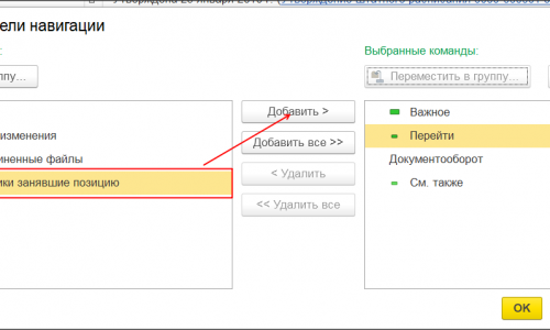 Через Настройку панели навигации невозможно добавить «Сотрудники, занявшие позицию». В списке «Перейти» нет такого пункта.