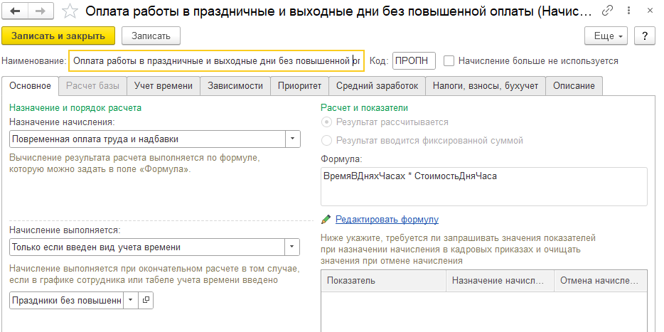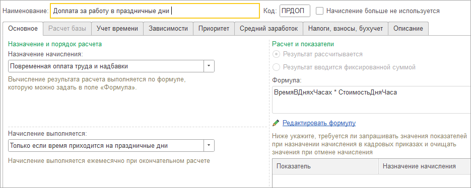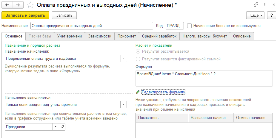 Прикладываю настройки начисления: Оплата праздничных и выходных дней — если выбрана повышенная оплата (в двойном размере):