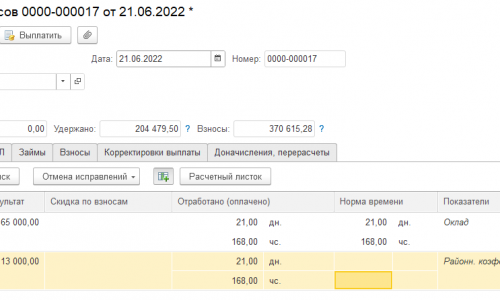 После данных настроек важно сотрудникам сделать или кадровый перевод списком или изменение оплаты труда. Только после этих документов им будет присвоено начисление «Районный коэффициент» Скриншоты прикладываю.
