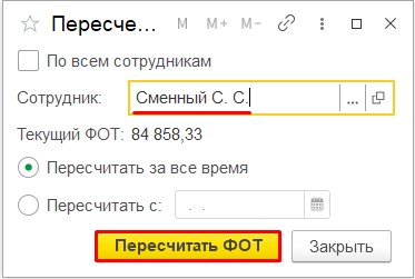 5)Делаем пересчет планового ФОТ (Зарплата-Сервис-Пересчет планового ФОТ)