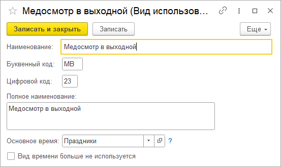 Вида времени «Медосмотр в выходной» у нас нет и не планируется создавать.