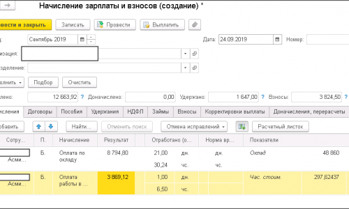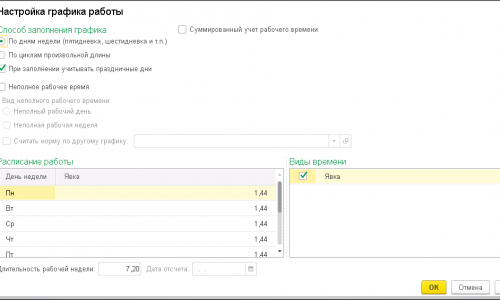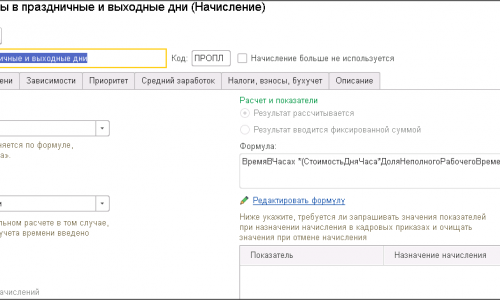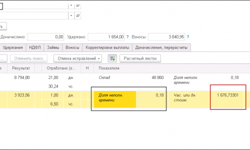 Добрый день! Он и позволяет.! Ведь в расчете, который Вы прилоили с исправленной формулой — результат расчета верный. Но я бы всетаки не рекомендовала менять типовую формулу, а именно воспользоваться одним из вариантов, которые я написала. Формула работает для всех, а оклад и график можно задать для конкретного сотрудника. Если измените формулу, то может возникнуть ситуация, когда вам потребуется ввести неполный график с флажком и будет неверный расчет уже по этому сотрунику.