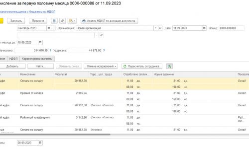 5. Попробуйте начислить расчет за первую половину месяца и вы увидите, что суммы будут стоять только к выплате. Ни окладов, ни отработанных дней в ней не будет.А вот если начислить зп целиком по итогам месяца, то при формировании Т51 за первую половину эти данные будут.Но нам нужна она в период, когда начислений за месяц еще нет.