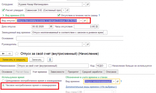 неправильно проставляются часы адм. отпуска в расчетный листок.