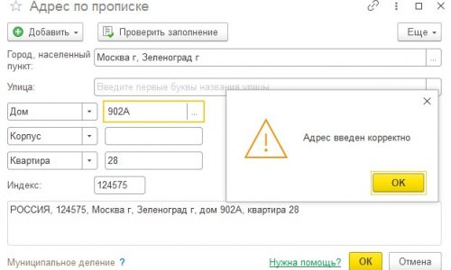 да, в Зеленограде почти все адреса такие. И при проверке программа же говорит, что адрес введен корректно и красным шрифтом не показывает.