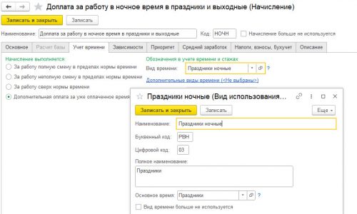 В программе был создан новый вид начисления «Доплата за работу в выходные дни ночью» , в табеле вводится соответствующий вид времени. Расчет производится правильно, но когда вводишь документ «Регистрация переработок», то норма времени за соответствующий период считается меньше на количество часов отработанных в выходные дни ночью .
