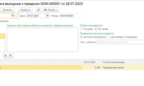 Каким документом регистрируется работа в выходной ночью?