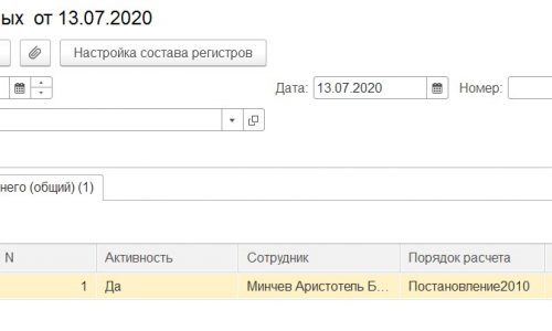 Описание: Документ «Доначисление, перерасчет» делает пустые записи по регистру накопления «Данные о времени для расчета среднего (общий)».