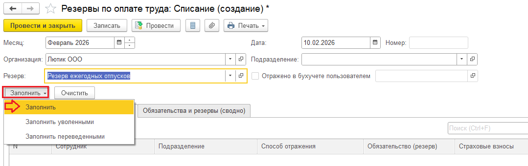 когда я захожу в резервы по оплате труда и нажимаю кнопку создать, ты мне предлагается выбрать из: начислить, инвентаризировать, списать и корректировать.