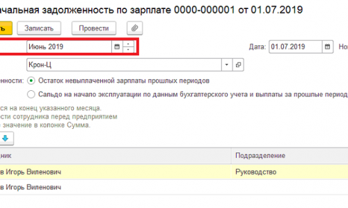 Укажите в документе «Начальная задолженность по зарплате» месяц начисления «Июнь 2019» по регистрам все старые долги закрыты в 0.