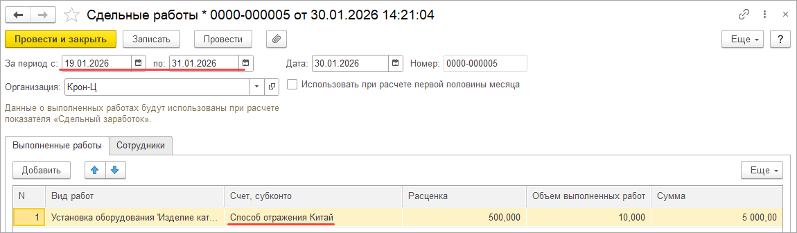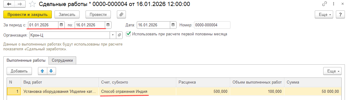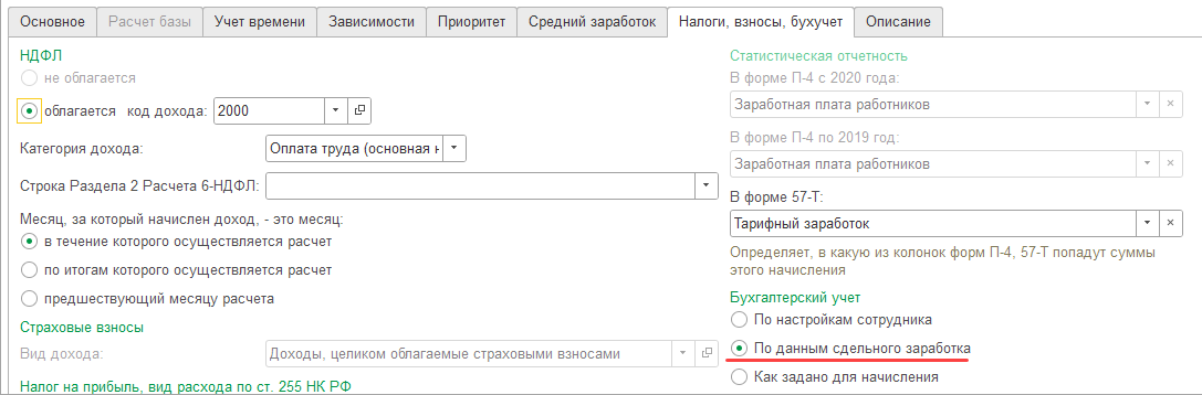 Уточните пожалуйста еще, как настроено основное начисление сдельного заработка?
