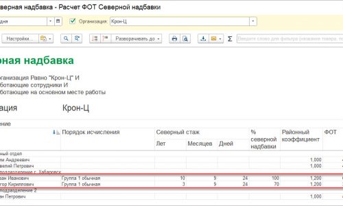 Действительно, можно получить сумму северных. Выделить колонки % северных не получилось. несмотря на то, что по сотруднику нашла поле ‘текущий % северной надбавки’. Может это не числовое поле и поэтому все попадает в колонку 0%? Тогда как выкрутить этот % и тем более разницу? Форму отчета и приблизительный вариант настроек отправила на почту.