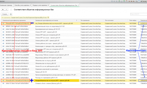 3. Уточнение: оказывается, я все, что писала, было больше про БП. В БП есть справочник «Способы учета зарплаты», в нем есть элемент «ооо_Резерв…».В ЗУП соответствующий справочник называется «Способы отражения зарплаты в бухучете», там этого элемента нет. Соответственно, в ЗУП нет ссылок на этот объект, а в БП есть. Скриншот прилагаю. Но в БП это ссылка на единственный документ уже закрытого периода. Поэтому удалить или исправить его мы не можем. А появился он на этапе, когда шла настройка синхронизации, он видимо оказался ошибочным. В Регистрах соответствия объектов ИБ: в БП строка для этого элемента есть, а в ЗУП нет, т.к. самого элемента нет. Вот я и хочу в БП удалить строку в регистре соответствия, чтобы и старый документ в закрытом регистре сохранился как есть, и новые синхронизации не брали эту строку в работу. (Хотя вроде и так не должны — и наименование другое, и пометка на удаление стоит, но видимо чудеса случаются).