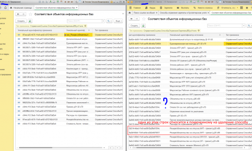 Проблема у нас такая: мы недавно перешли на БП 3.0 и ЗУП 3.1, настроили нам синхронизацию. Вроде все нормально было. В какой-то момент мы заметили, что в Способах учета зарплаты образовалось две записи с одинаковыми реквизитами, хотя и с немного разными названиями (в одном были скобки, а в другом слэш), и при синхронизации программа их мешает – то одну возьмет, то другую. Мы пометили на удаление одну из записей и переименовали ее (добавили «ооо_» в начале названия), чтобы программа ее не трогала. Удалить полностью мы ее не можем, потому что в закрытых периодах уже есть с ней проводки. Два месяца синхронизировалось правильно, а в июле при синхронизации ЗУП взяла строку, помеченную на удаление!!! Как такое возможно, я не понимаю.