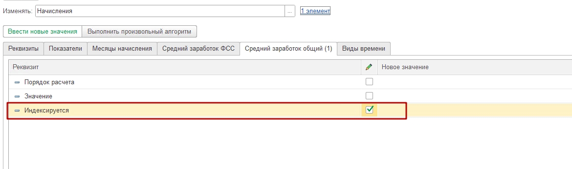 Затем на закладке Средний заработок общий поставьте галочку в строке индексируется. Далее нажмите Изменить реквизиты.