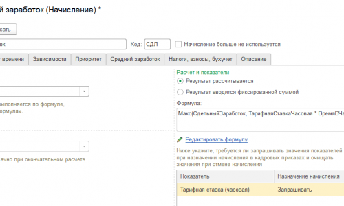 Здравствуйте! Дополню, что чтобы после изменения настройки начисления, где Вы установили «Очищать» показатель «ТарифнаяСтавкаЧасовая» очистился для сотрудника, нужно еще и перезаполнить документ, которым было отменено это начисление. В Вашем случае, как я понимаю, это документ «Кадровый перевод».