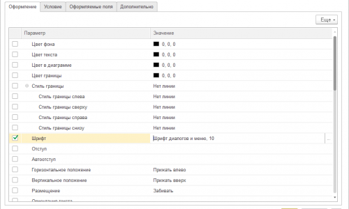 Для шрифта в Заголовке: заходим в настройки для технического специалиста. Переходим на Вкладку «Условное оформление», добавляем условие:
