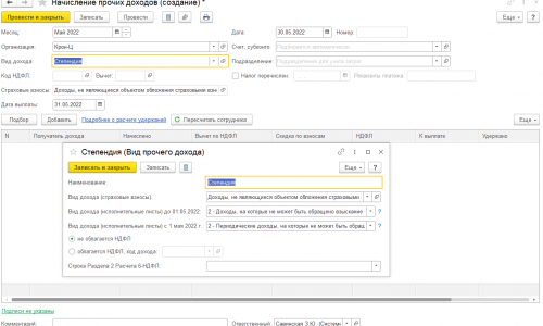 Обратите внимание на особенности этого документа. Начисленный этим документом доход считается «незарплатным», он не отражается в зарплатных отчетах: своде, расчетном листке и т.д, для них существует спец. отчет «Незарплатные доходы» (Выплаты — отчеты по выплатам — Незарплатные доходы). Выплата такого дохода в ЗУП тоже не предполагается — она вводится в базе 1С: Бухгалтерии.