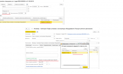 Смоделировал. У меня в базе Класс условий труда позиции изменился, после проведения документа «Результаты специальной оценки условий труда». Получается, что дополнительно регистрировать изменение позиции штатного расписания не требуется, если класс условий труда меняется по результатам спецоценки. Достаточно ввести документ «Результаты специальной оценки условий труда»