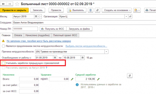 Здравствуйте!Дело в том, что у сотрудницы введена еще одна справка с другого места работы и ее нельзя не учитывать при расчете среднего. Поэтому снимать галочку «Учитывать заработок предыдущих страхователей» не вариант для нас.