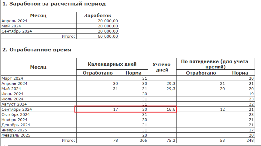 Но я столько дней не вижу в расчете вообще? Как понимать на сколько дней делился общий заработок?