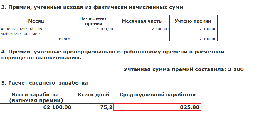 Но у Вас не она, у Вас расчет верный. В обоих случаях средний получается 2 307,63. Просто в печатной форме указаны какие именно суммы премии были учтены в расчете с учетом коэффициента. А в калькуляторе среднего указаны общие суммы премии, поэтому кажется, что есть разница. Но в этом случае бы сама сумма среднего в двух случаях была бы разная, а она одинаковая.