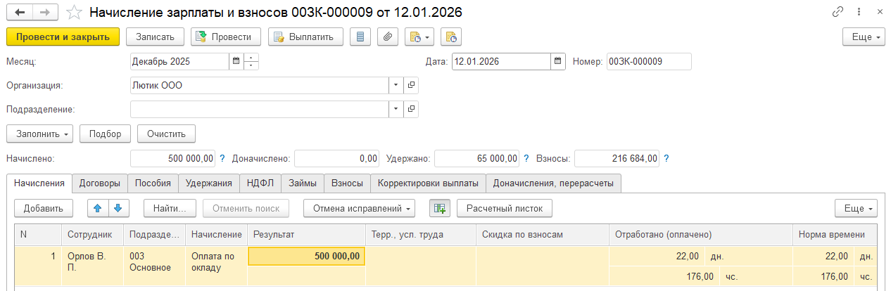 Затем мы начисляем зарплату: