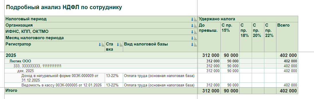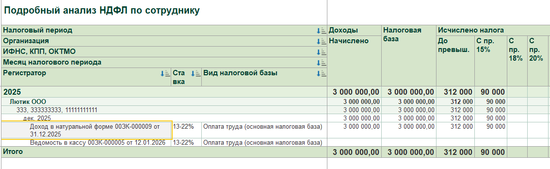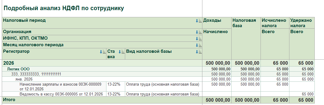 Проверяем НДФЛ по отчету: