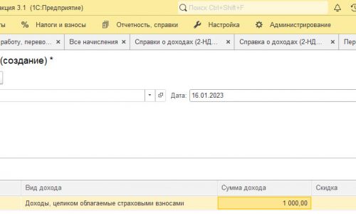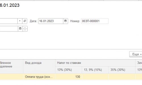 Далее создаем документ Перерасчет ндфл (Налоги и взносы.) Указываем расчетный год — 2022, Месяц регистрации — Декабрь 2022 (если еще не закрыт месяц) или Январь 2023.