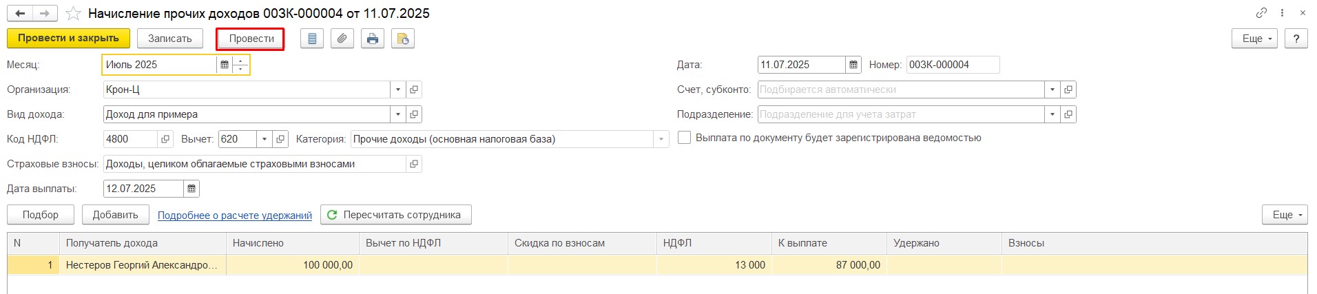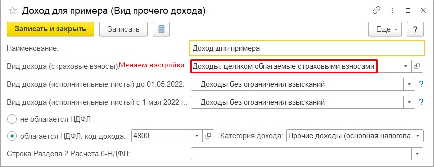Здравствуйте!Если я верно Вас поняла, то у Вас доход, зарегистрированный документом Начисление прочих доходов, был не верно настроен в целях обложения страховыми взносами? Если это так, то последовательность действий следующая: