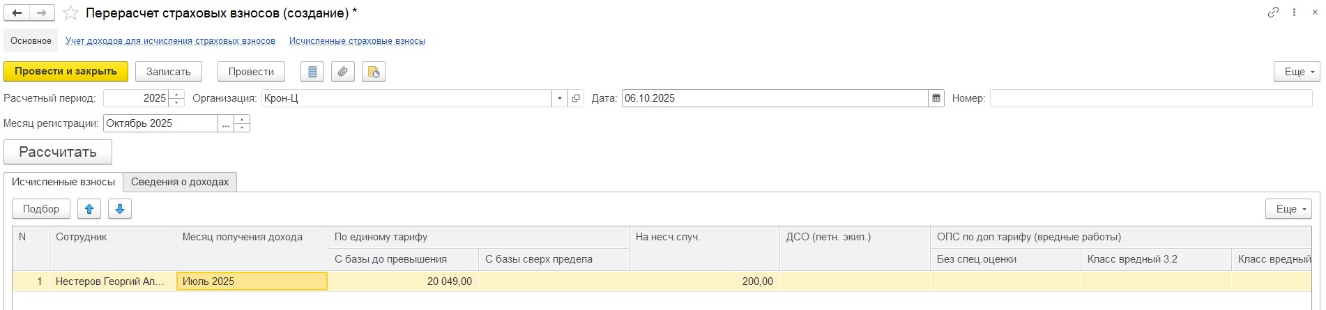 Добрый день, подскажите, пожалуйста, как корректно пересчитать страховые взносы по прочим доходам за предыдущий месяц, если изменилось налогообложение.