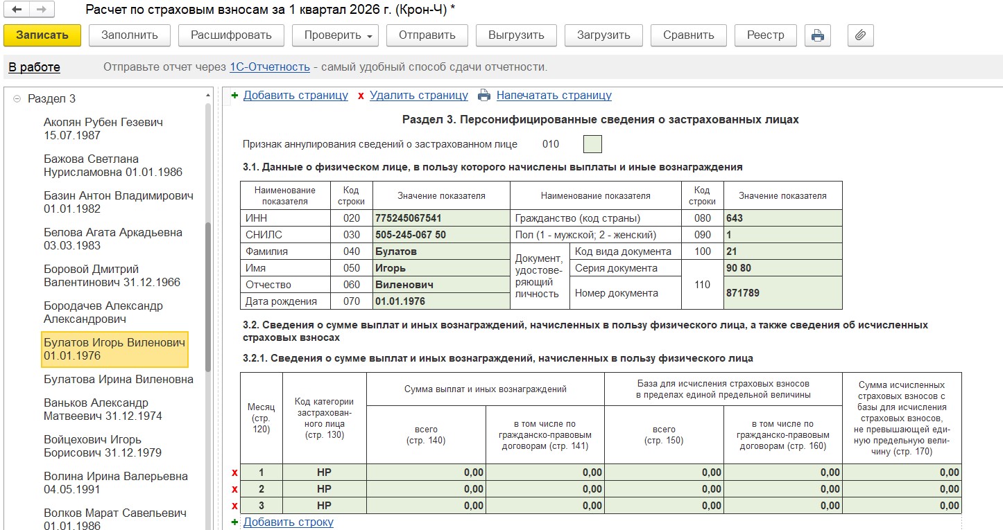 Сравнивали данные, которые записываются в регистры(«Страховые взносы по физическим лицам» и «Исчисленные страховые взносы») — одинаковые как у старого так и у нового руководителя.
