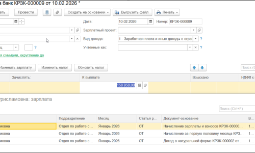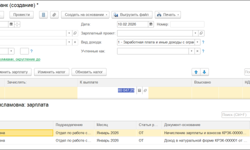 1)Начислили Натуральный доход месяц-январь, дата получения дохода 31.01.2026