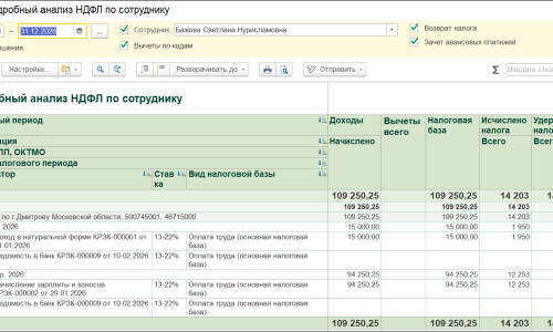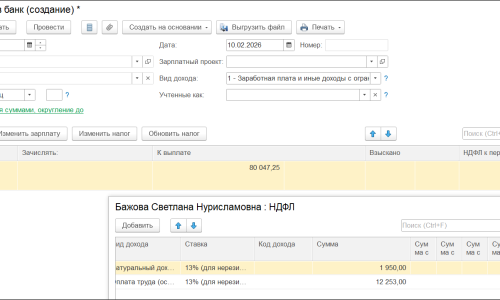 По окладу данный сотрудник должен был получить 220023,00 руб. на руки, но по расчетному листку (скрин во вложении выше) видно, что НДФЛ с суточных в размере 2392,00 был удержан и сотрудник суммарно получил 217631,00. Получается, НДФЛ при выплате был удержан автоматически при выплате зп 04.02.26. Но почему программа начисляет автоматически удержанный ндфл 2392,00 плюсом при следующей выплате зп?
