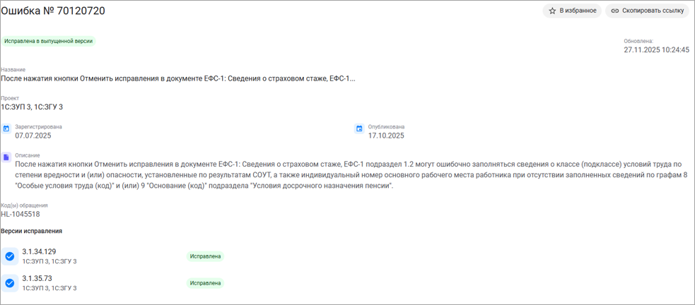 При этом в ЗУП недавно исправили ошибку, которая связана с заполнением класса условий труда и номера рабочего места в подразделе 1.2 формы ЕФС-1 :